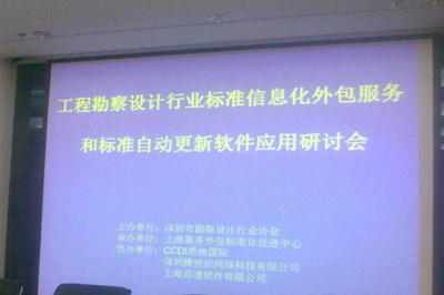 MORE>3月28日,深圳地建公司、工程勘察设计院相关人员参加了深圳市勘察设计行业协会主办的工程勘察设计行业标准规范信息化外包服务和标准自动更新软件应用研讨会。会上由上海服务外包标准化促进中心、中建国际等单位介绍了标准规范信息化建设及软件的应用情况。与会人员热情讨论,获益匪浅,信息化管理水平得到了提升。 ..