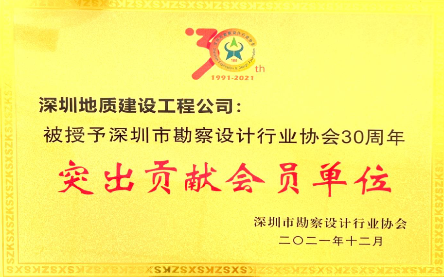 MORE>12月30日,深圳市勘察设计行业协会30周年庆典暨九届三次会员大会隆重召开,我司法定代表人刘都义、总工程师耿光旭出席了此次大会。 会上,深圳地建被授予“深圳市勘察设计行业协会30周年突出贡献会员单位”、“2020年度深圳市工程勘察设计企业营业收入十强会员单位”、“2020年度深圳市工程勘察..